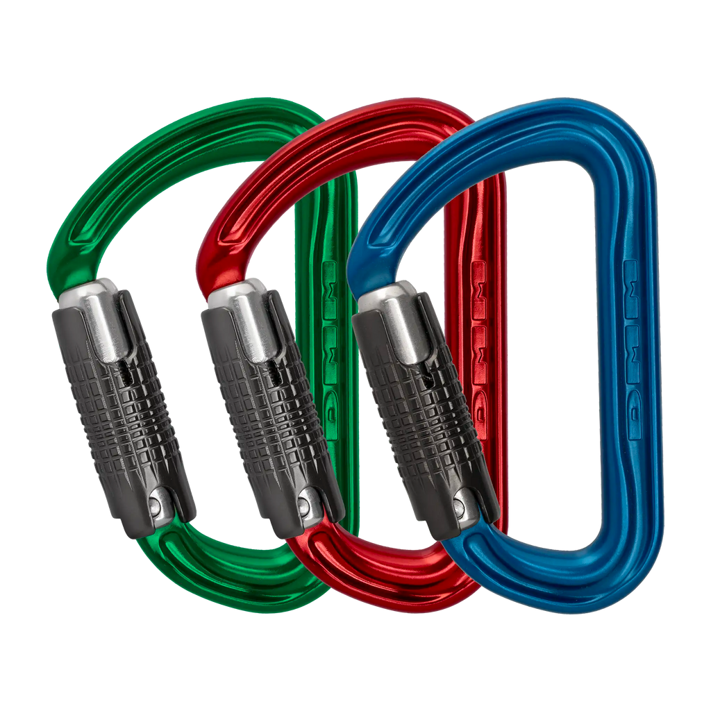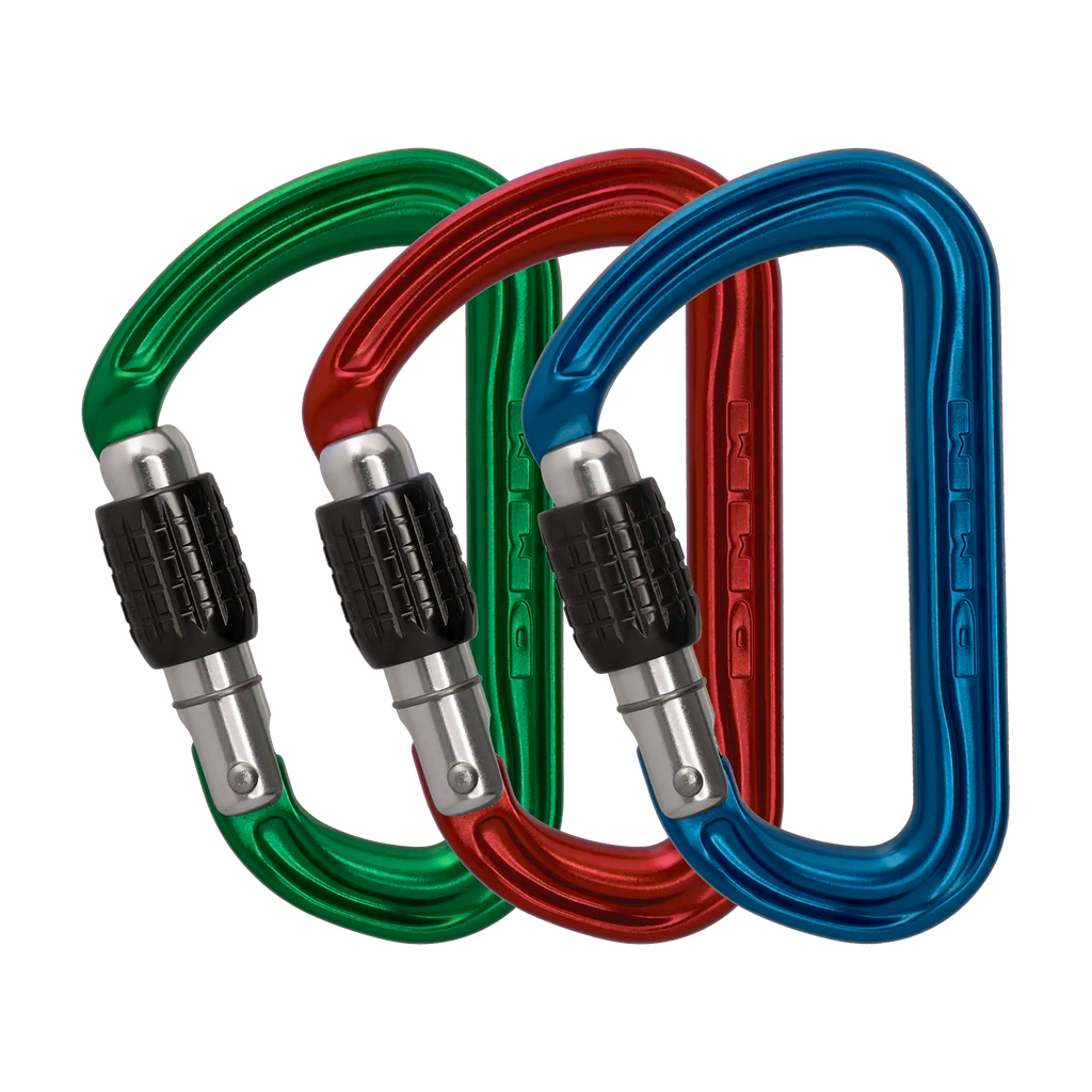 | Shadow Locking Screwgate 3 Pack Blue/Red/Green | A302-P3 | 62 x 102mm | 150g | 24kN | 7kN | 9kN | 18mm | EN362:2004 B EN12275:2013 B UIAA121:2009  |